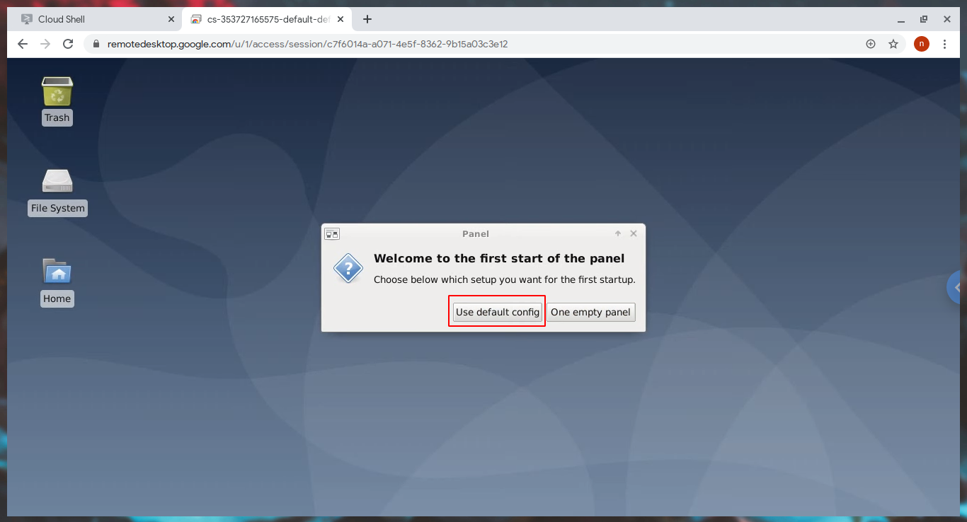 - Xfce4 will open, Click on default panel and you're ready to go.