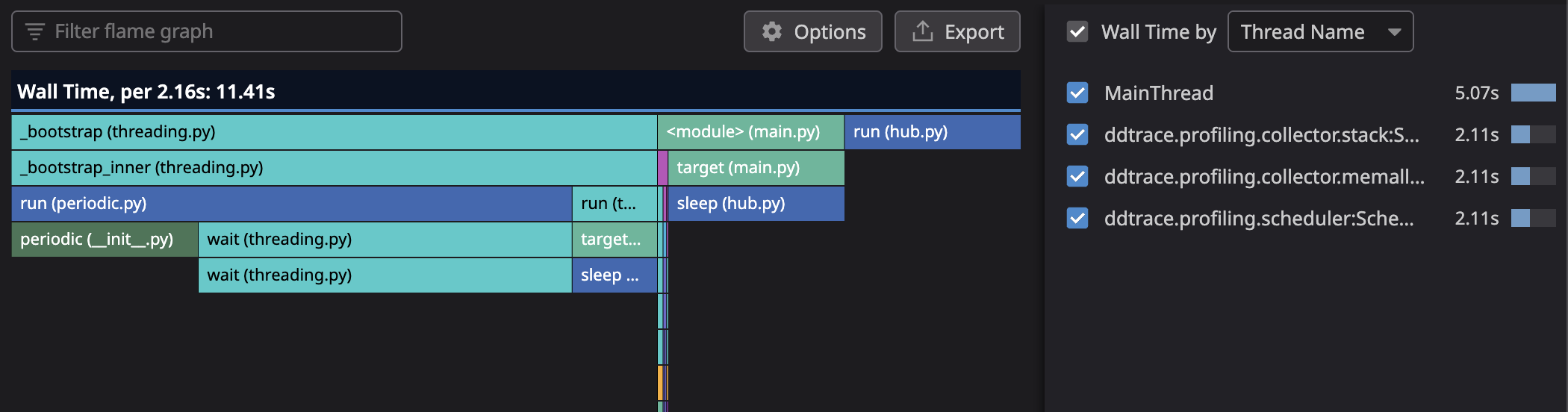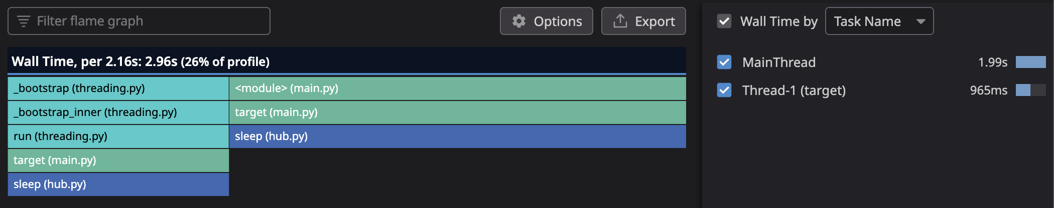 main thread, and a `sleep(1)` in a secondary thread, the `MainThread`