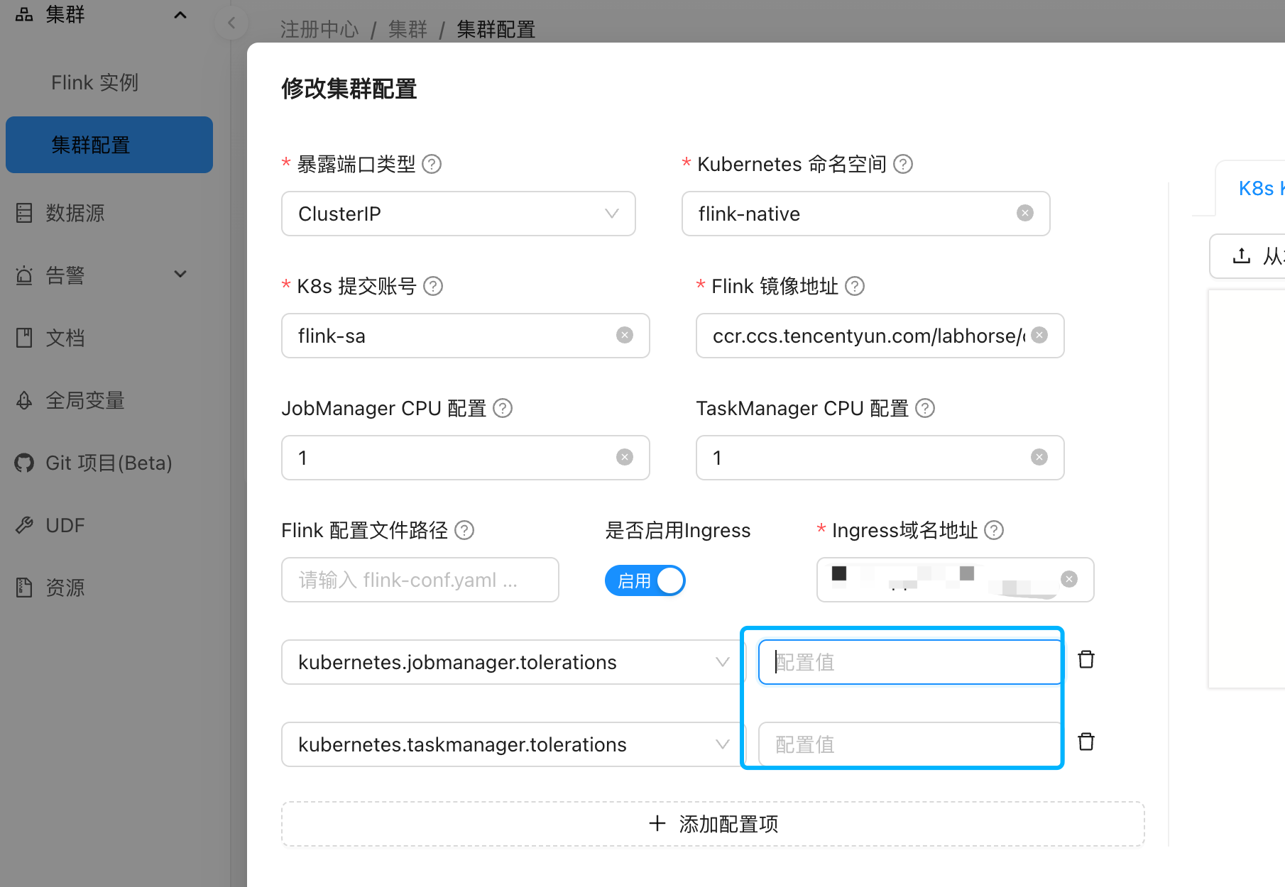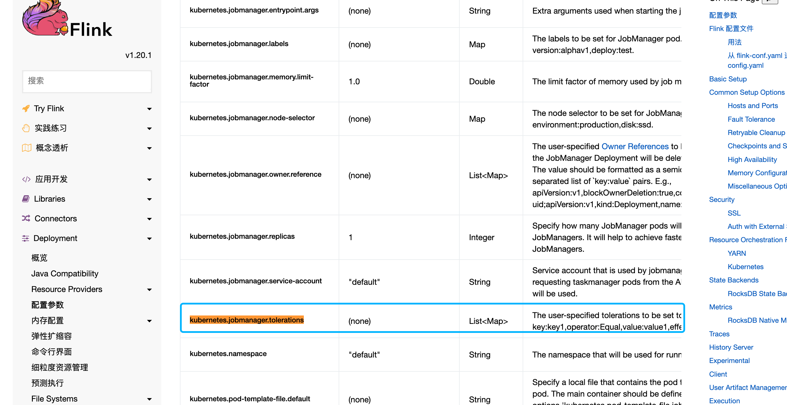 ### Search before asking - [x] I had searched in the [issues](https://github.com/DataLinkDC/dinky/issues?q=is%3Aissue) and found no similar optimization requirement. ### Description   how to add `kubernetes.jobmanager.tolerations` config the office flink web:https://nightlies.apache.org/flink/flink-docs-release-1.20/zh/docs/deployment/config/ ### Are you willing to submit a PR? - [ ] Yes I am willing to submit a PR! ### Code of Conduct - [x] I agree to follow this project's [Code of Conduct](https://www.apache.org/foundation/policies/conduct)