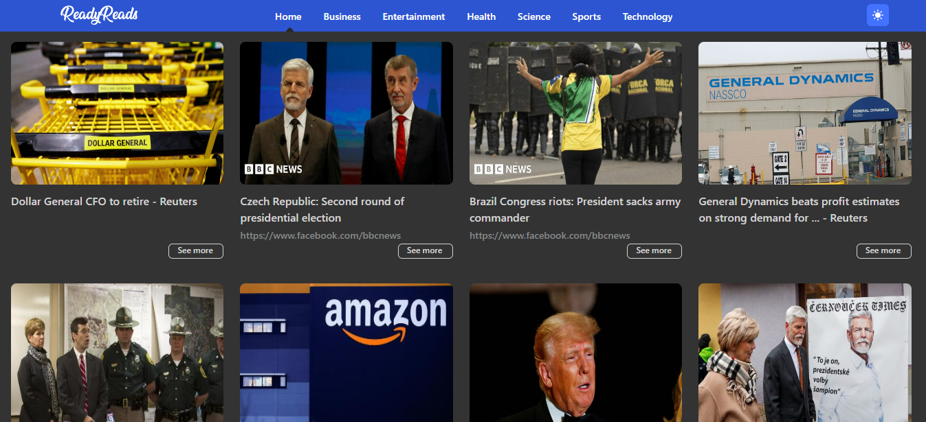 This responsive news web app provides users with the latest and trending news stories every day.This app is designed to work across a range of devices, including desktop and mobile. Users can browse and filter news articles by category,read in-depth articles with accompanying images. This project demonstrates the use of modern web development techniques to create a dynamic and engaging user experience for news consumption.