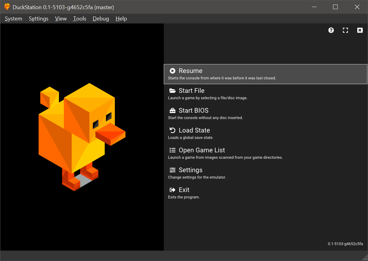 DuckStation features a fully-featured frontend built using Qt, as well as a fullscreen/TV UI based on Dear ImGui.