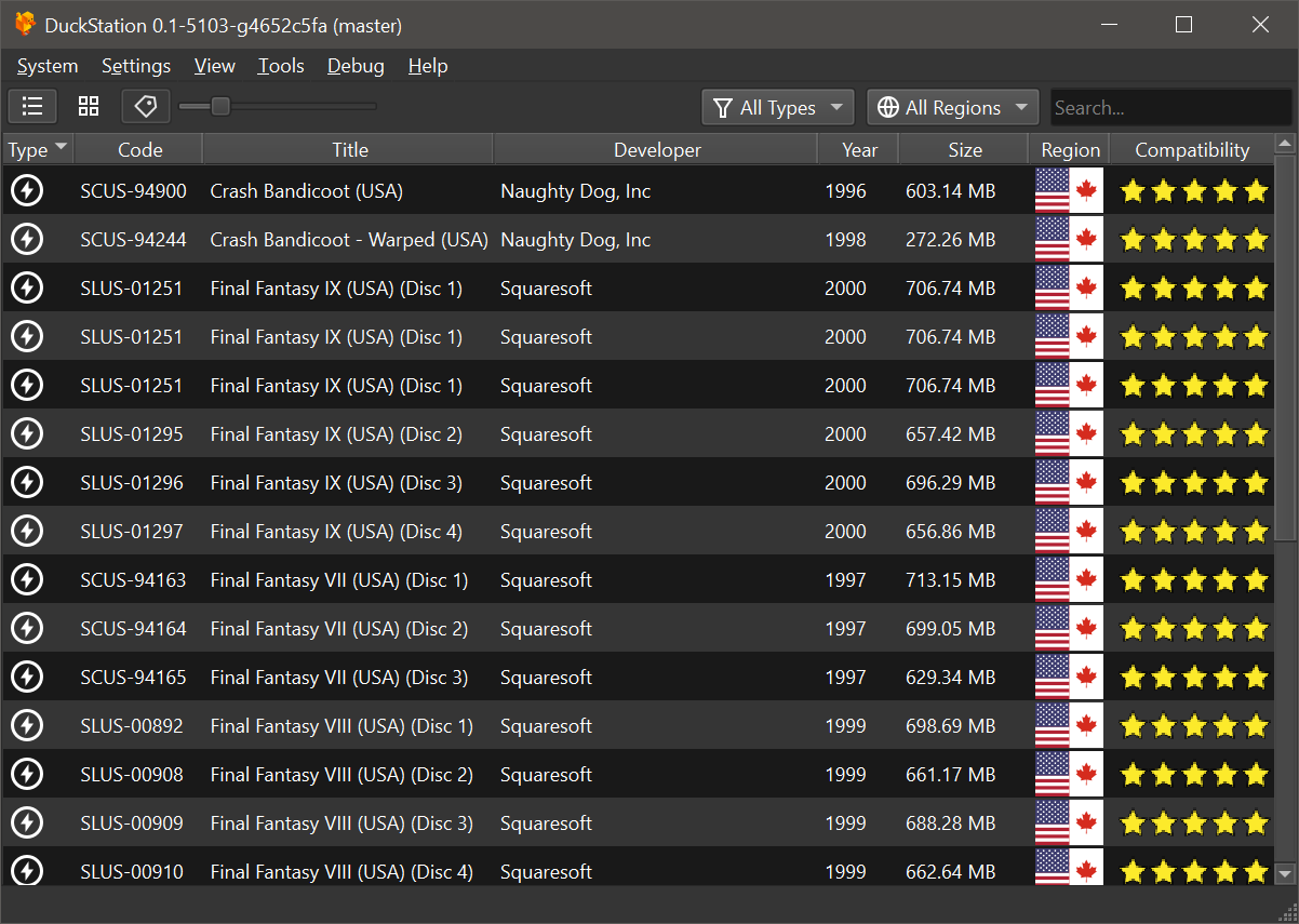 Binaries of DuckStation for Windows x64/ARM64, Linux x86_64 (in AppImage/Flatpak formats), and macOS Universal Binaries are available via GitHub Releases and are automatically built with every commit/push. Binaries or packages distributed through other sources may be out of date and are not supported by the developer, please speak to them for support, not us.