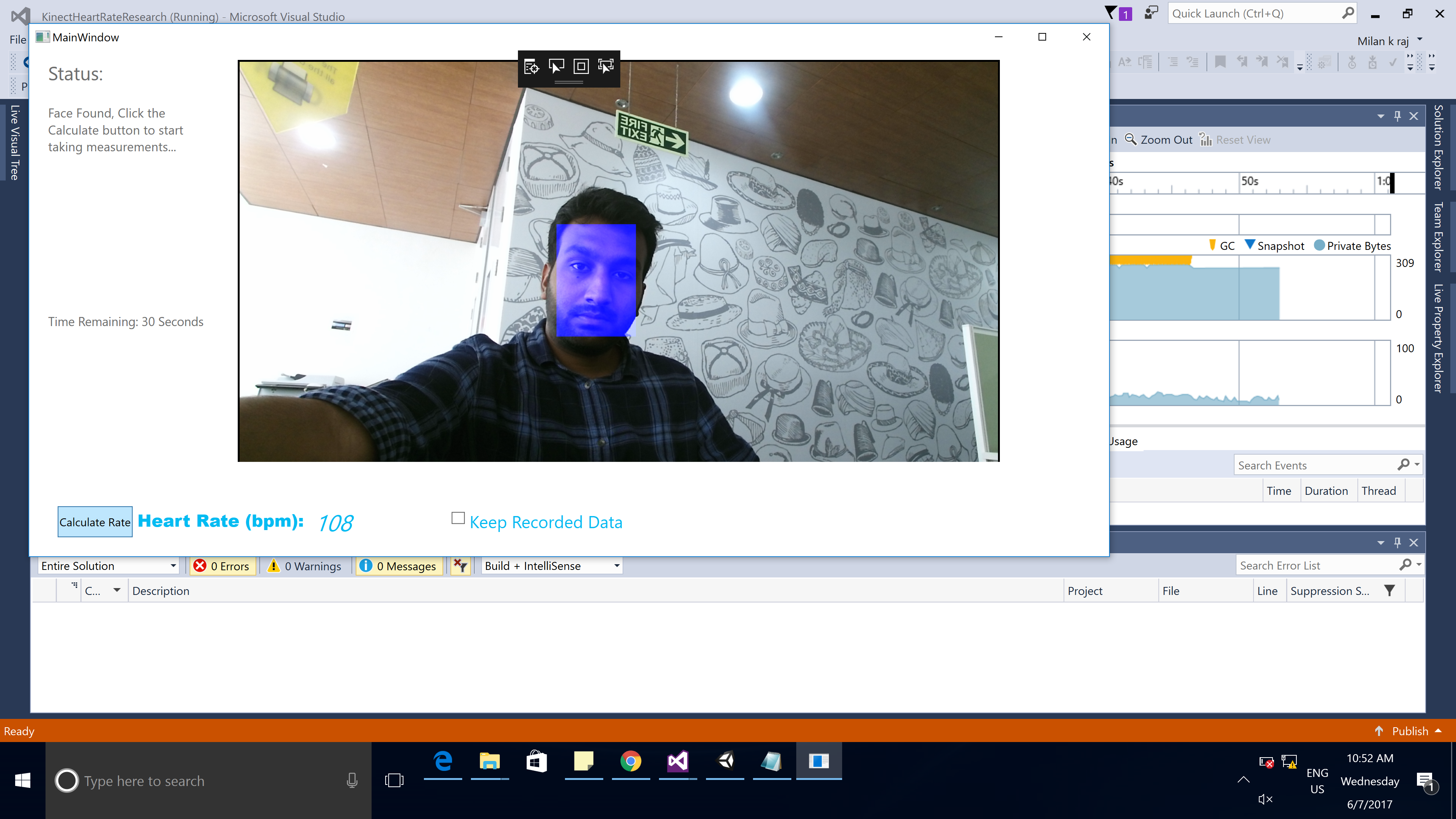 The basic approach is simple. When a person's heart pumps blood, the volume of blood is pushed through various veins and muscles. As the blood pumps through the muscles, particularly the face, the more light is absorbed, and the less brightness the a web camera sensor picks up. This change in brightness value is very minute and can be extracted using matematical tricks. The change in brightness is periodic. In otherwords, a signal or wave. If we can match the signal/wave to that of a blood pulse, we can calculate the heart rate.