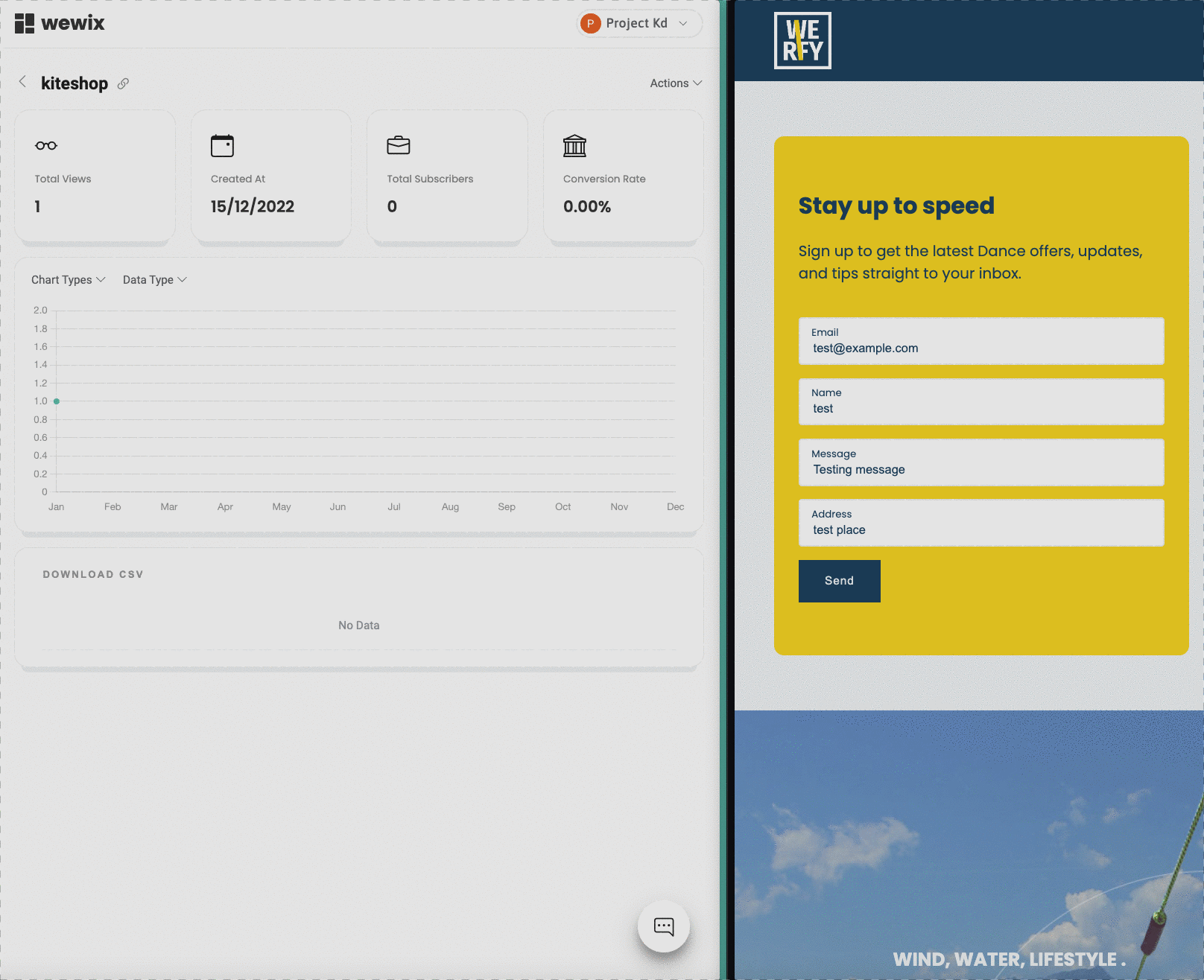 The Wewix Dashboard allows you to manage stats about visitors to your website, see your conversion rate (the number of subscribers based on the number of visitors), see live chat messages in real time, and see real-time leads from users filling out forms on your published website. This can be useful for tracking the performance of your website and staying on top of any inquiries or questions from visitors.