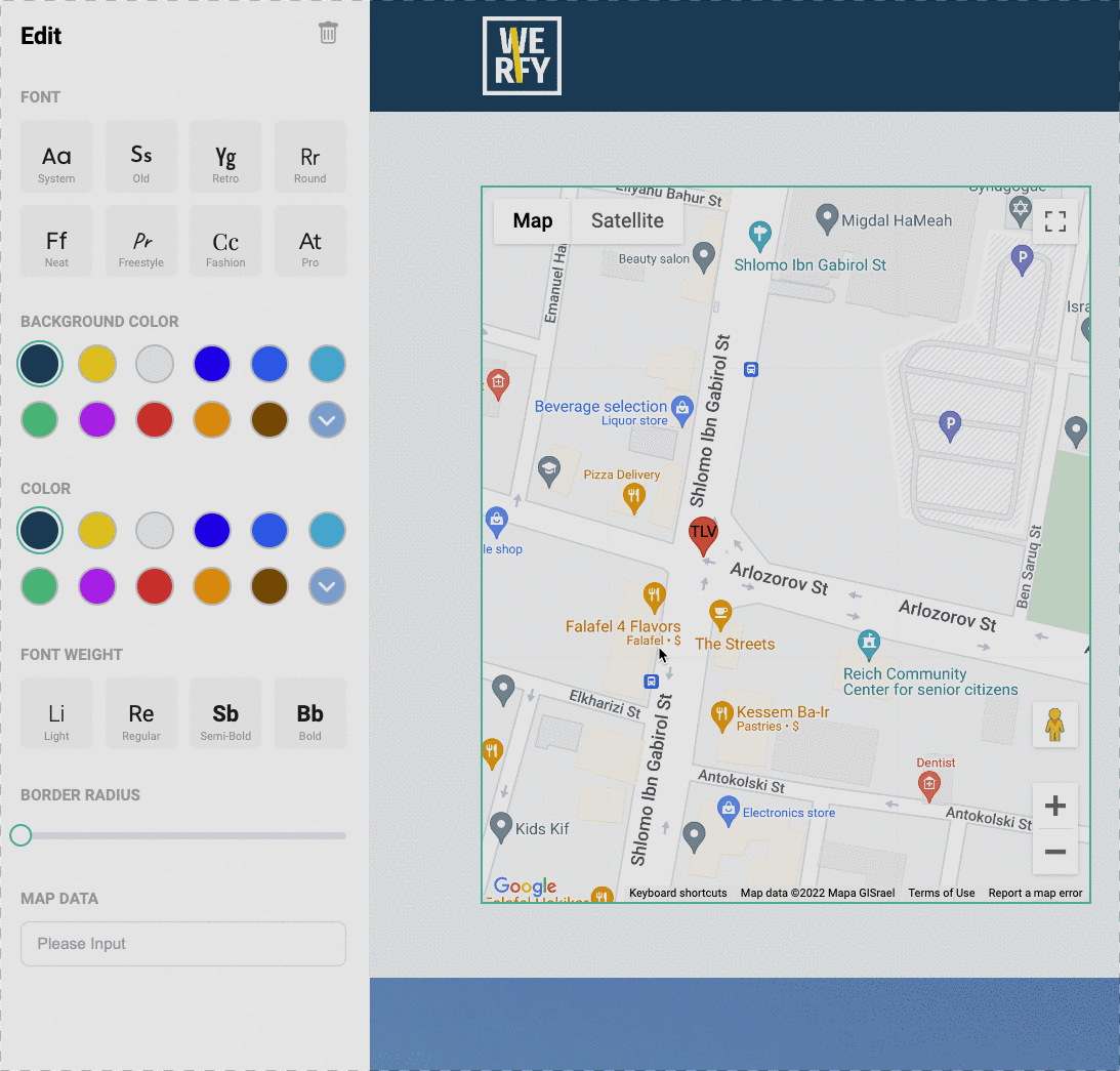 Wewix's Extra Edit Options include the ability to center a map by inputting an address. This can be useful for highlighting the location of your business or for providing detailed directions to your website's visitors.