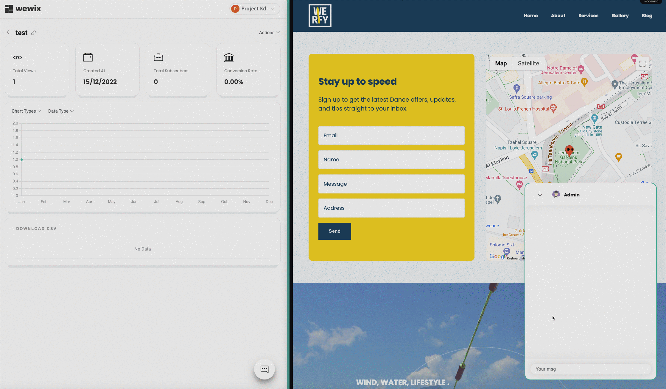 Wewix's Live Chat feature allows you to communicate with visitors to your website in real time. This can be useful for providing support and answering questions, as well as for engaging with your audience and building relationships with potential customers. With the Live Chat feature, you can add a floating chat bubble to your website, which visitors can use to send messages to you. All messages can be managed and viewed in the Wewix Dashboard, so you can keep track of conversations and respond to inquiries quickly and easily.