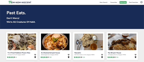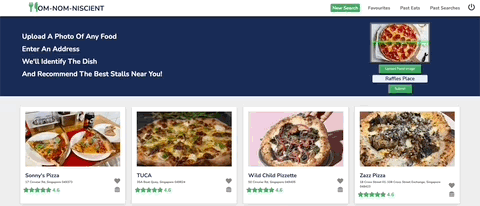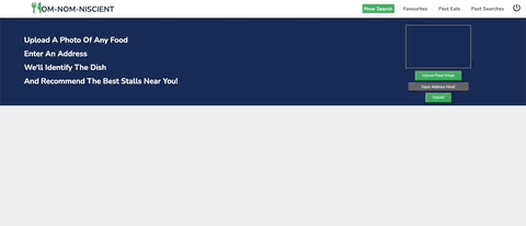 - Upon submission, OmNomNicient identifies the dish and recommends restaurants near the inputted address.