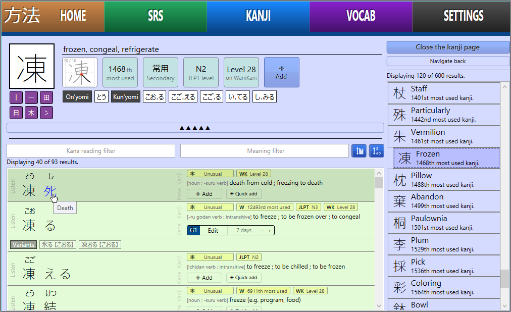 Houhou SRS (or Houhou for short) is a Japanese kanji and vocabulary dictionary and learning software for Windows.