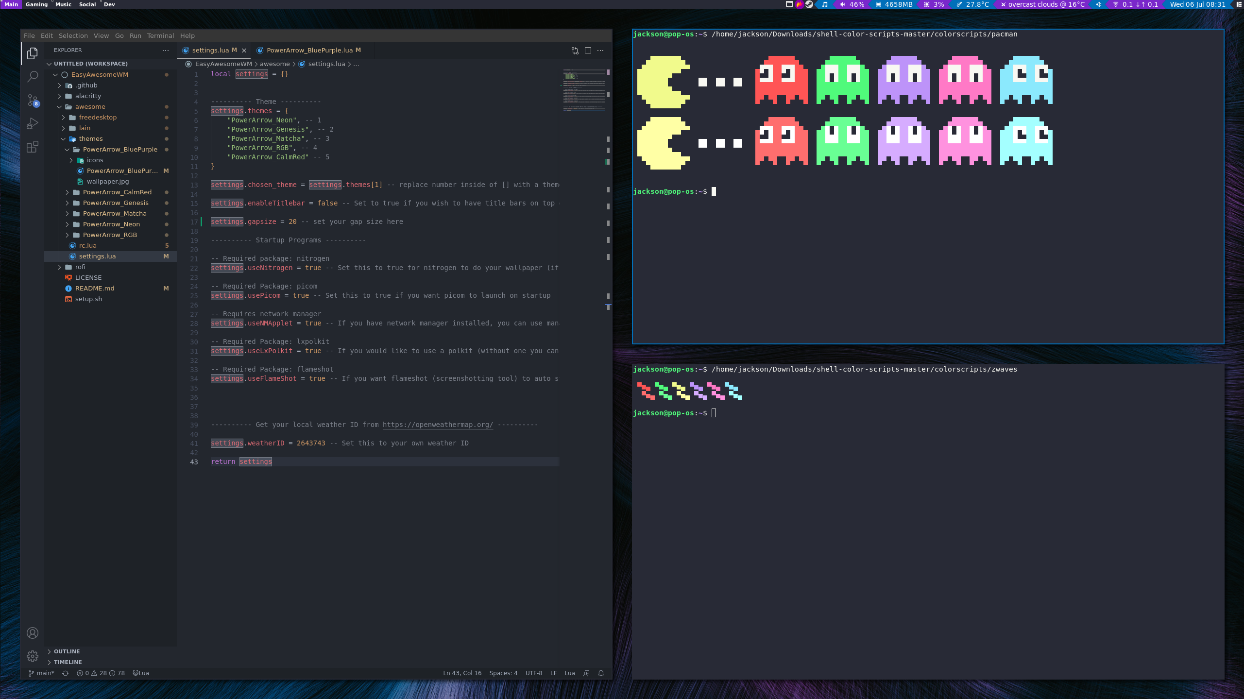 It is a simple script that will install AwesomeWM and plenty of customised themes alongside your current distro's desktop. I made this for myself to go along with my PopOS setup as I am not a fan of the default gnome desktop.