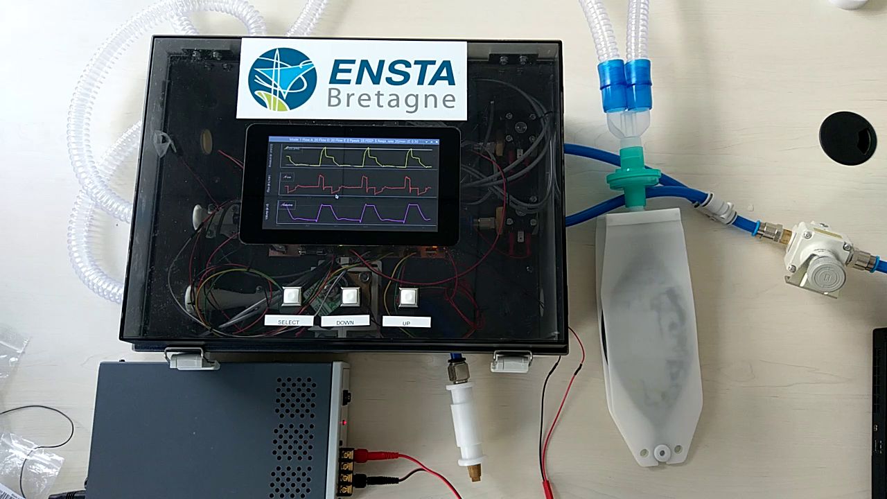 This repository contains the software and CAD parts of a simple ventilator prototype made at ENSTA Bretagne in April-May 2020, with the help of Pr E. L'Her from Brest CHRU. Details on the design are available here. The demo of the high flow oxygenation mode can be seen is this video, the patient-triggered assistance mode is tested there, and other random tests are made here.