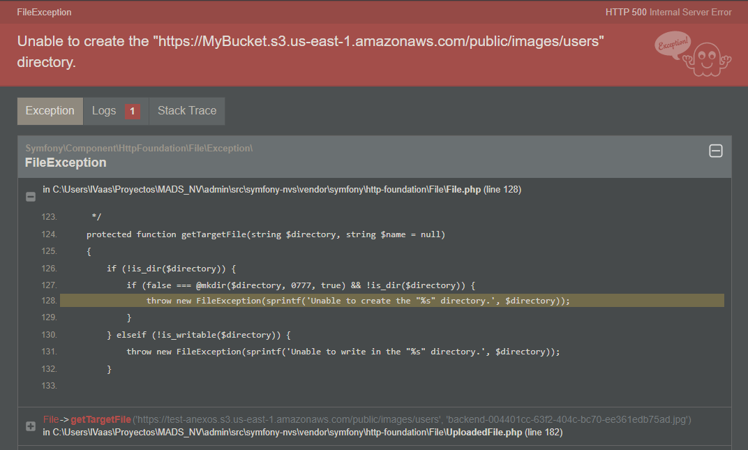$result = $file->move($uploadDir, $filename); // <--- Output: Unable to create the "https://myBucket.s3.us-east-1.amazonaws.com/public/images/users" directory.