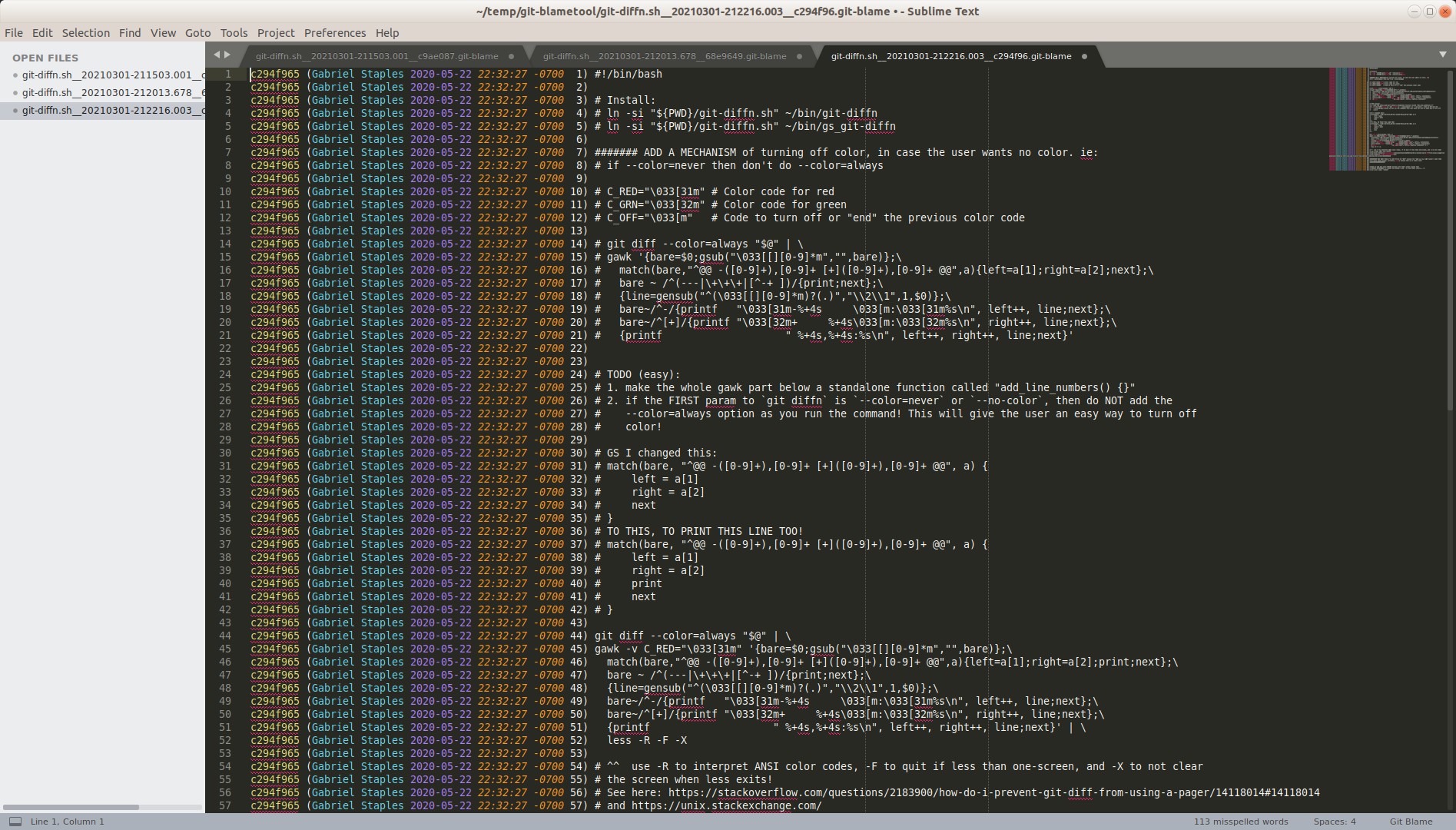 git diffndrop-in-replacement program to showgit diffwith line 'n'umbers. As a thinawk-language-based wrapper aroundgit diffit supports ALL options and features thatgit diffdoes! Learn how to install and use it here. Screenshot:git blametool. See: useful_scripts/README.md.git branch_. Same asgit branchexcept don't show "hidden", user-backed-up branches. See my answer here: Hide but still save a branch with GIT?- ssh key setup information