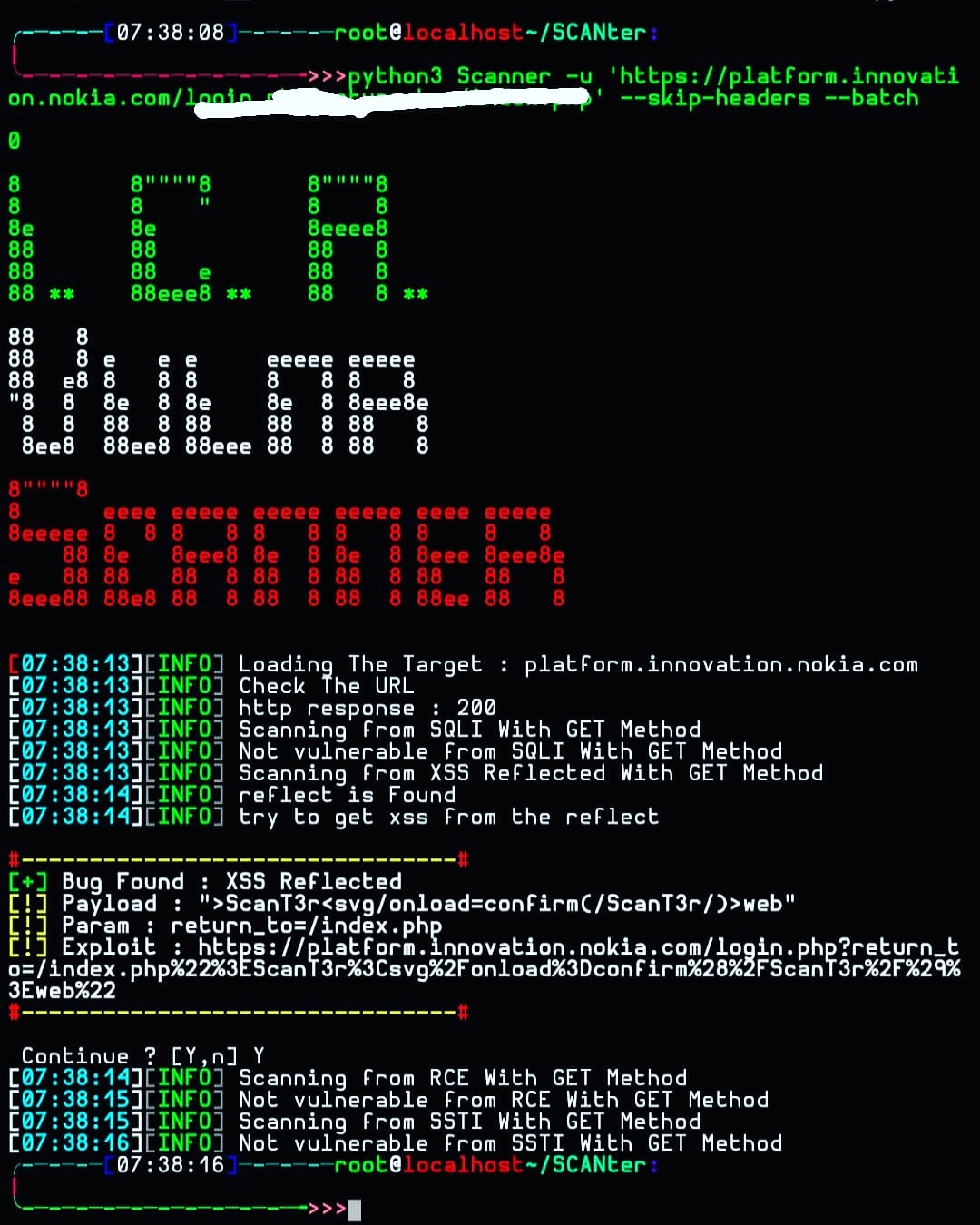 $ python3 ICAscanner -u 'http://localhost/dvwa/vulnerabilities/exec/' --data='ip=localhost&Submit=Submit' --cookies='PHPSESSID=safasf'