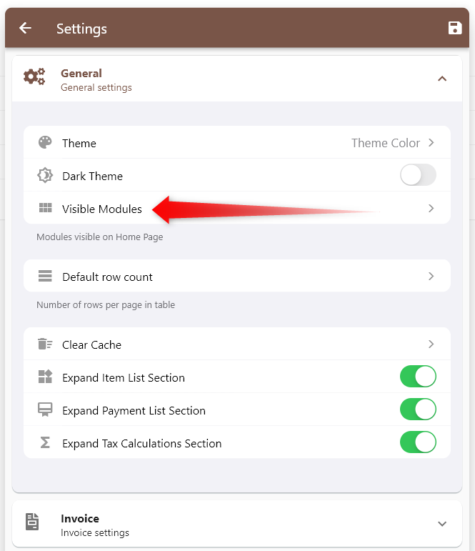 Visible modules in Home Screen #16