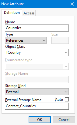 IMPORTANT NOTES:External Storage and Class Persistence - A class must have its Persistence property set to stored if it is referred to by attributes that use external storage. A class defined with embedded Persistence may only be used by embedded (the InstantObjects historical arrangement) part and parts attributes;Performance Hint - Currently, the InstantObjects library does not create parent class indices for the linking tables in the database. A significant improvement in performance, therefore, can often be achieved by manually adding these indices (fields 'ParentClass' and 'ParentId', non-unique) to the linking tables for your external container attributes. Remember that these manually added indices will be removed by each database build and probably after an evolve, so they will need to monitored and re-added as necessary. The need to add these indices manually will be eliminated after the introduction of Referential Integrity options to IO. This is expected to happen in the near future and will enhance both the integrity of data in and performance of the database for brokers that can implement Referential Integrity.