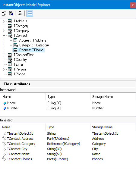 A useful feature of the InstantObjects Model Explorer when creating or managing the class model is the ability to toggle the tree view panel between inheritance and relational type views.