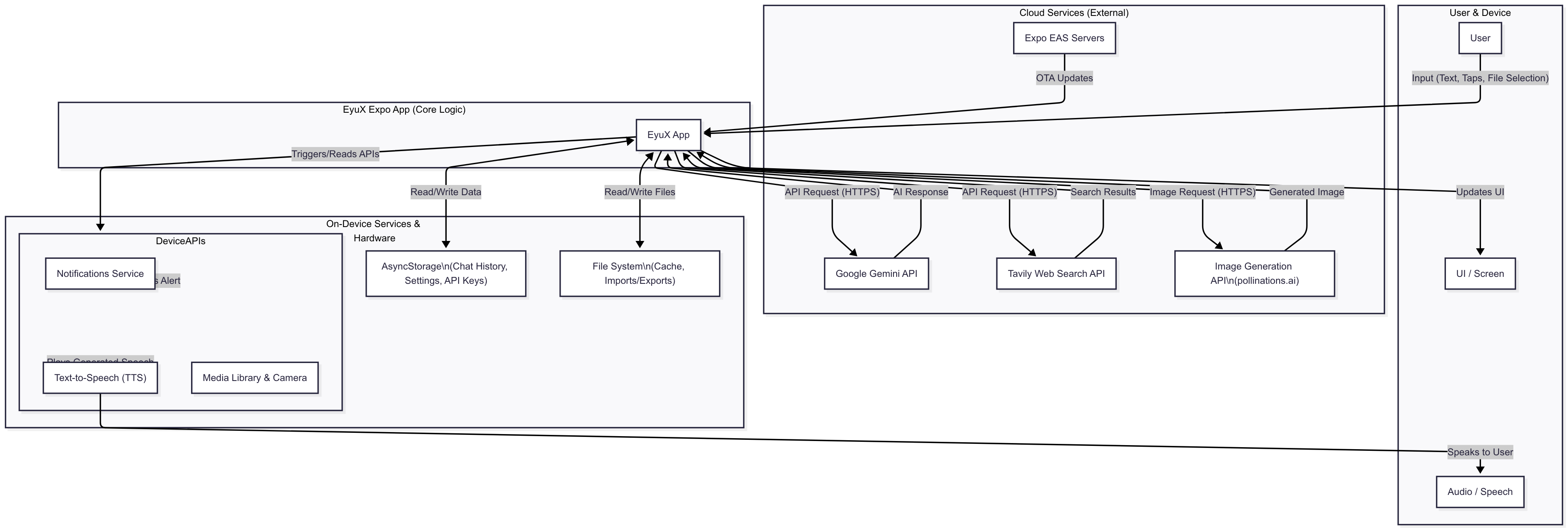 EyuX is more than just a chatbot. It's a versatile mobile and web companion designed to be your assistant, entertainer, and productivity partner. Powered by Google's Gemini models, it features dynamic AI personalities, live web search, AI image generation, interactive code execution, long-term memory, and extensive customization options, all wrapped in a sleek, animated, and user-friendly interface.