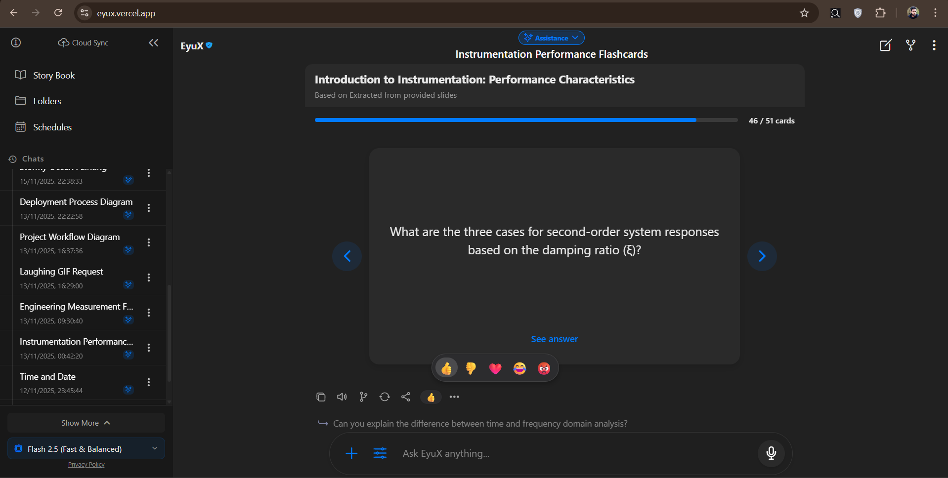 - β‘ Interactive Flashcards: Automatically generate study flashcards from any conversation and review them in a flip-card interface.