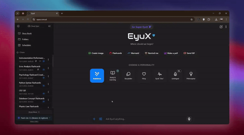 - πΎ Intelligent Memory: EyuX remembers key facts you share, creating a continuous, personalized conversation. You can also manage these memories manually.