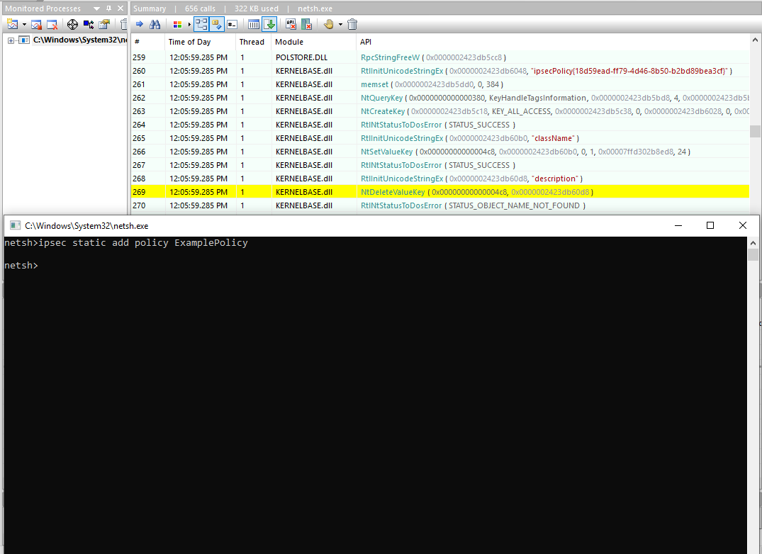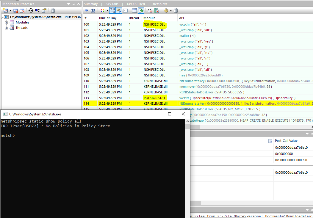 To identify the DLLs required for this job, we'll first need to work out what functions netsh ipsec is calling when it executes it's various commands. To do this, we're going to use an API Monitor.
