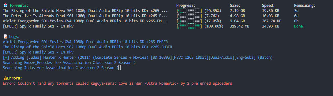MAX_ACTIVE_TORRENTS=4- Set preferred nyaa.si uploaders