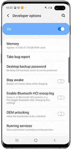 | 5. To disable the Developer options at any time, tap the switch. | ![]() |
