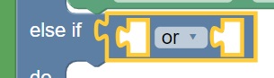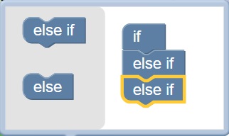 | 14. Drag an “else if” block from the left side of the pop-up menu and snap it into place under the “if” block.