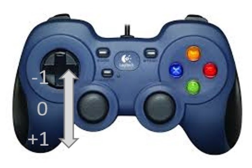 The object gamepad1 is available for you to access in the runOpMode method. It represents the state of gamepad #1 on your Driver Station. Note that for the F310 gamepads that are used during the competition, the Y value of a joystick ranges from -1, when a joystick is in its topmost position, to +1, when a joystick is in its bottommost position. In the example code above, you negate the left_stick_y value so that pushing the left joystick forward will result in a positive power being applied to the motor. Note that in this example, the notion of forwards and backwards for the motor is arbitrary. However, the concept of negating the joystick y value can be very useful in practice.
