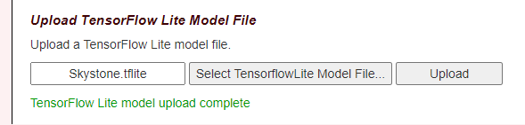 Scroll towards the bottom of the screen, and click on the "Select TensorflowLite Model File" button to open a dialog box that you can use to select your .tflite file.