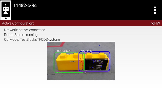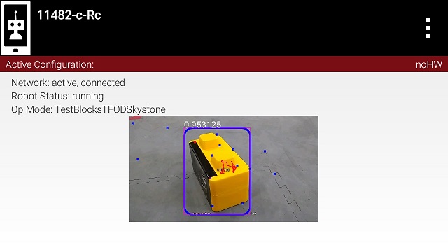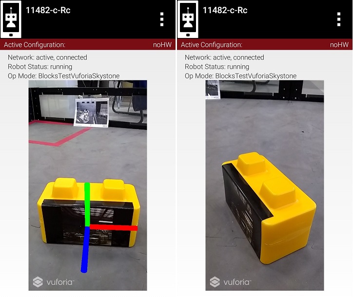 In the 2019-2020 challenge, the Skystone game element can be identified and tracked using either technology. Vuforia requires that the 2D image target on the face of the Skystone be visible for detection and tracking. TensorFlow can also recognize Stones in the 2019-2020 challenge in addition to the Skystone elements. Either can be used to identify and track Skystones during a match.