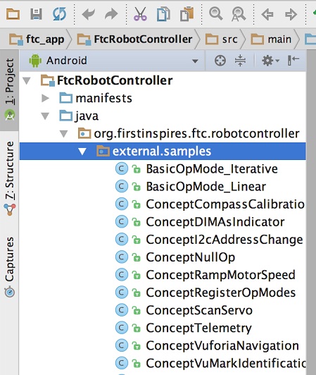 A great way to learn how to program a robot is to examine the sample op modes that are included with the FTC Android Studio project folder. You can locate these files in the FtcRobotController module in the package "org.firstinspires.ftc.robotcontroller.external.samples".