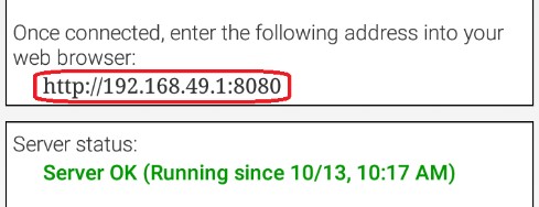 | 1. Launch the web browser on your laptop (FIRST recommends using Google Chrome) and find the web address that is displayed on the Program & Manage screen of the Robot Controller. Important Note: If your Robot Controller is an Android smartphone, then the address to access the Program & Manage server is "192.168.49.1:8080".