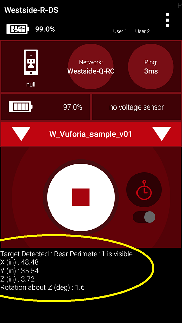 Instead this program simply displays Telemetry, showing some contents of the tracking results. Those results are still stored in the special variable called vuforiaResults, and can be extracted using other Vuforia methods besides ‘IsVisible’. This example Op Mode calls these 5 basic methods: