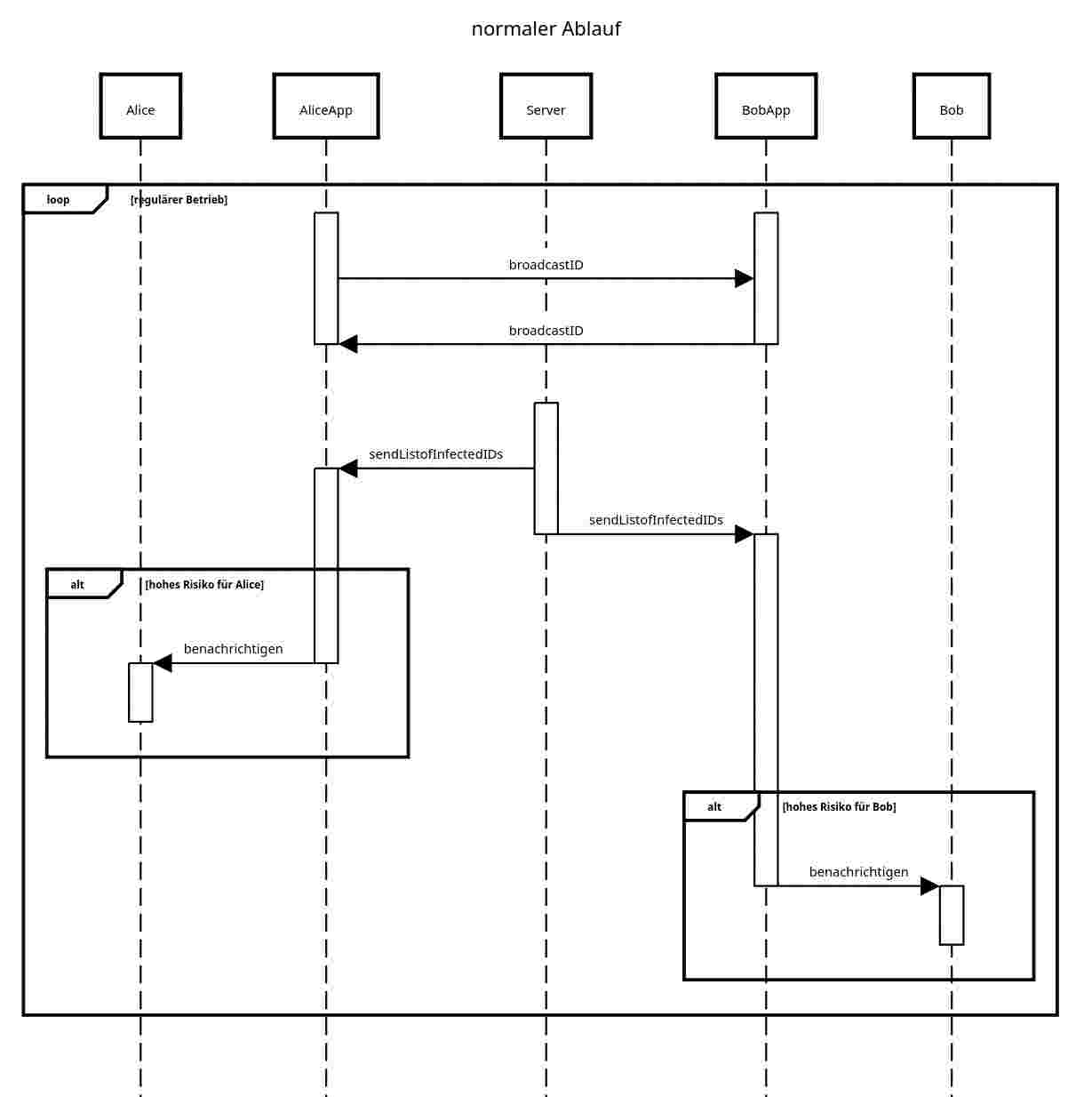 - Der zentrale Server beobachtet nur anonyme Identifikatoren von infizierten Personen.