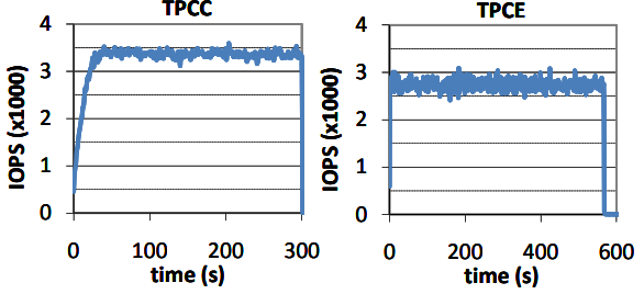 - TPC-C는 평균 3360 IOPS, TPC-E는 평균 2740 IOPS를 보임