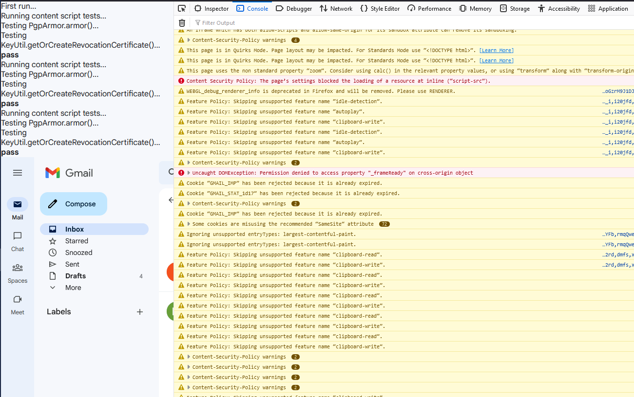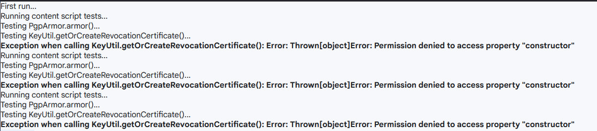 inside OpenPGP.js) caused an exception Error: Permission denied to access property "constructor"
