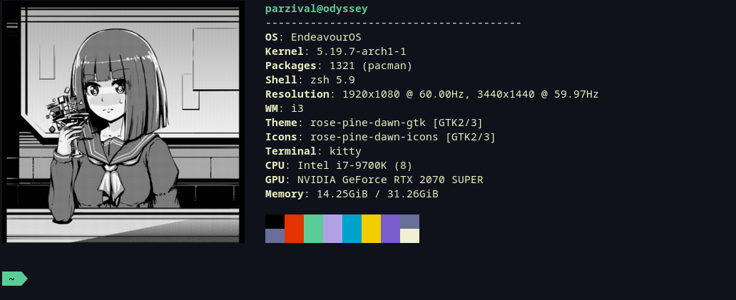 - You can change neofetch's config to use an image instead. You can find more info in their wiki. For example, I changed following variables in my config.conf to show an anime waifu: