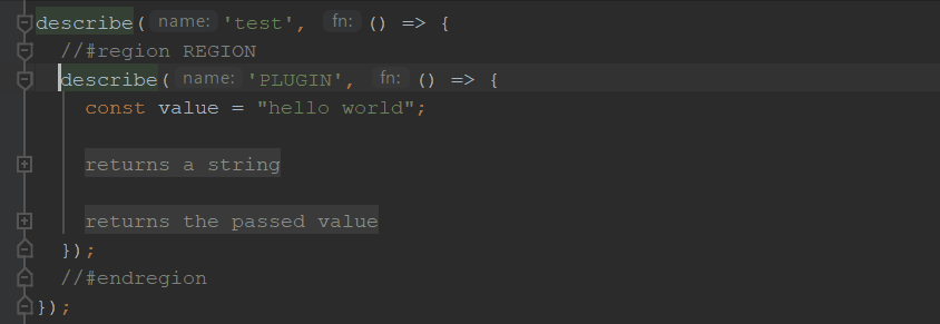 In particular, note where the caret is when the //#region tag folds, vs when folding takes place for the describe block.