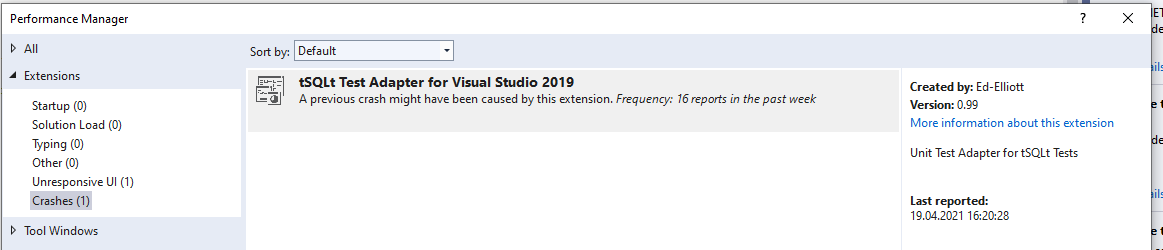 VS Professional 2019 (Version 16.9.4) crashed many times after installing adapter above.