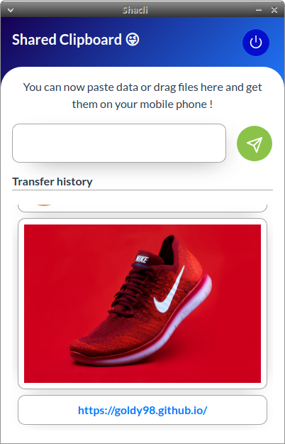 Shacli provide a shared clipboard between two devices (everything copied on one device is available to download on the other devices)