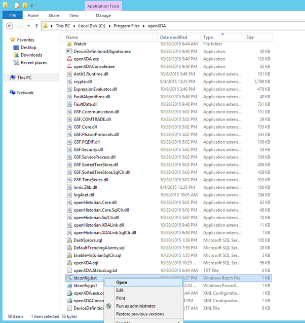 - In the openXDA install folder, open the file "ldconfig.bat"