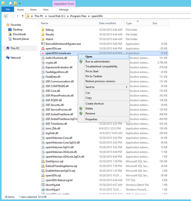 - Start the openXDA console. This can be done from the start menu or by opening "openXDAConsole.exe" in the installation directory.