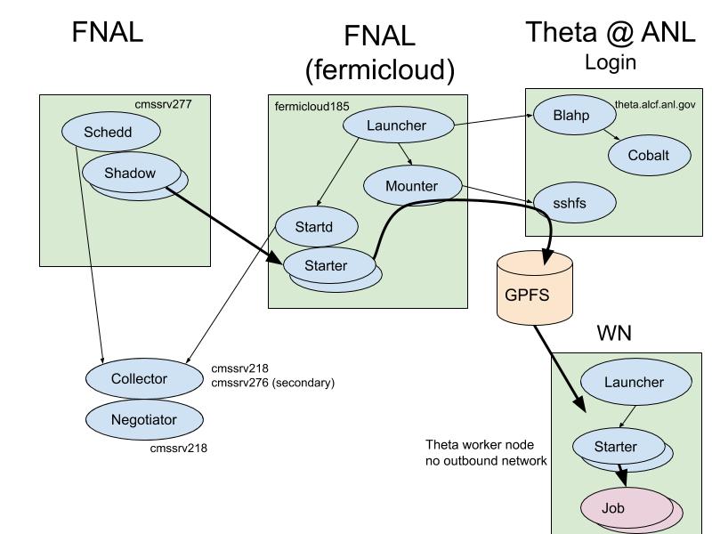 - HTCondor binaries need to be built on worker nodes. Won't work if built in login node since it has a slightly different OS. Both are SUSE based though --> Works with some tweaks in Cmake (found some weirdness there which I notified HTCondor team of)