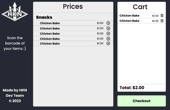 HKN's online ecommerce store for snacks, drinks, and merch