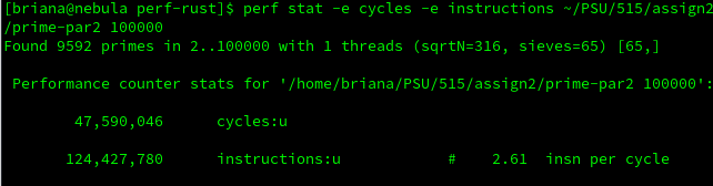 Similar to perf stat, when instructions and cycles are both requested returned the instructions per cycle.
