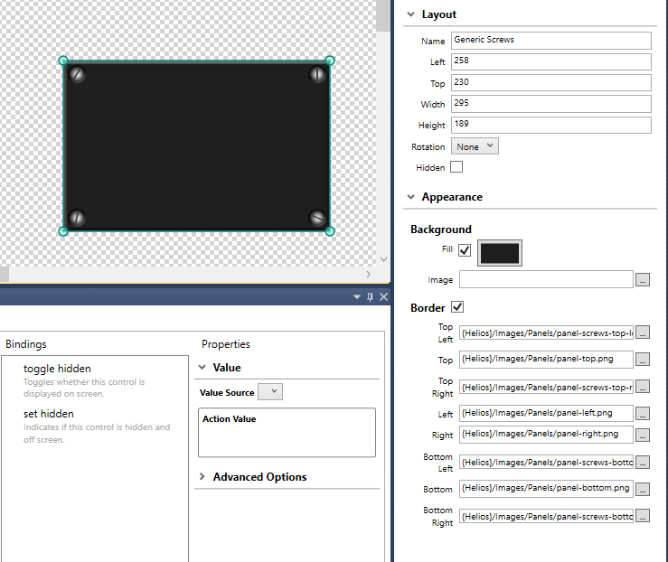 This is a decorated template of the Empty Panel with a flat dark grey background, Bezel border and screws on the corners.
