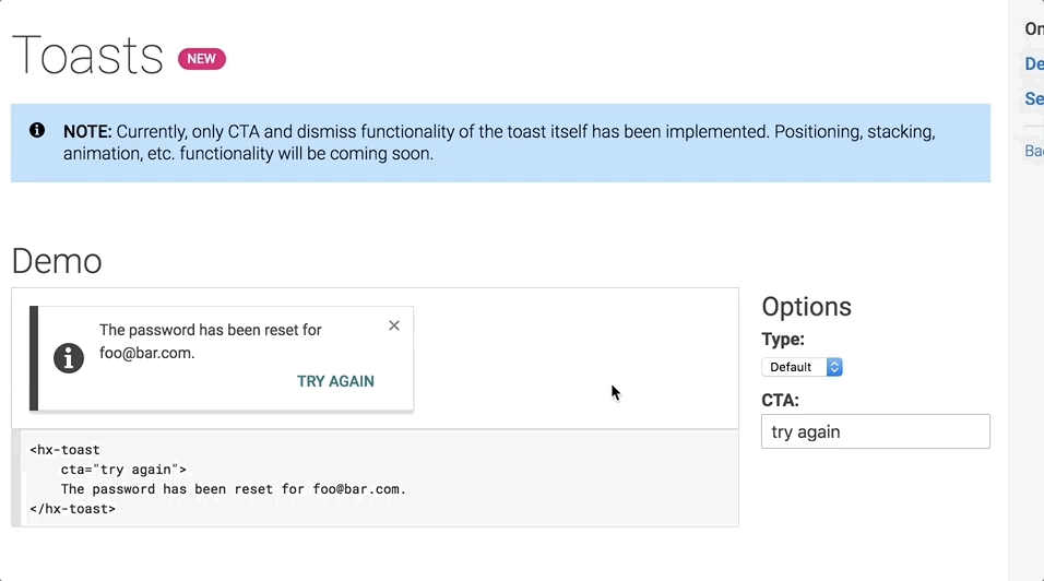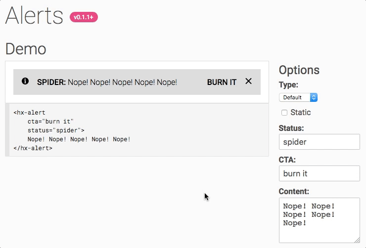 The Alert component was updated to make use of the brand new <hx-alert> element. This new element makes it easy to add meaningful alert bars in your applications.