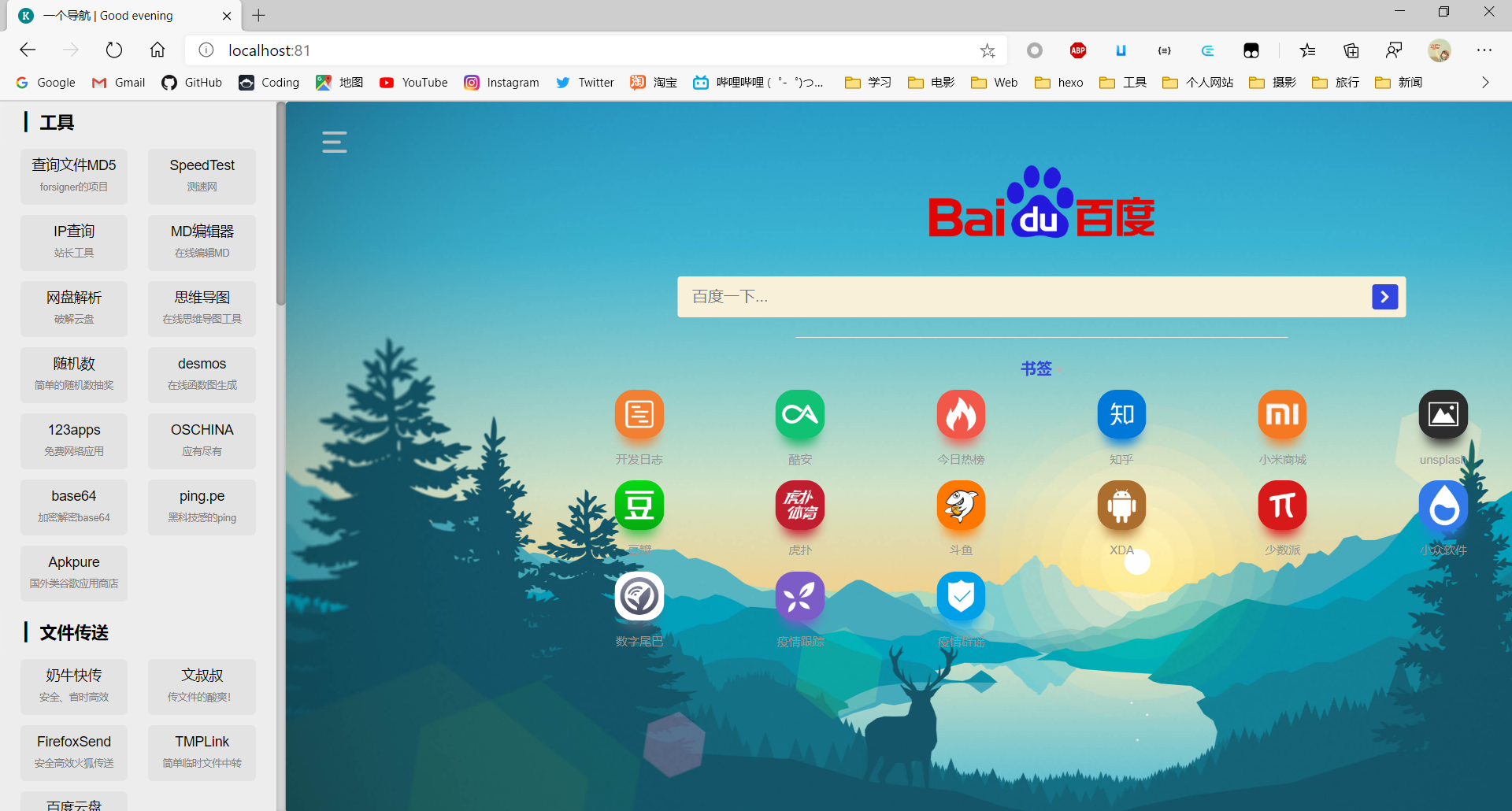 市面上有很多知名的导航,但是我都不太喜欢。不是铺满广告,就是信息太杂。所以尝试自己写了个导航页,支持响应式。绝对无添加无防腐剂!太低版本的浏览器(比如IE8以下)显示可能有问题,不过也没打算适配。