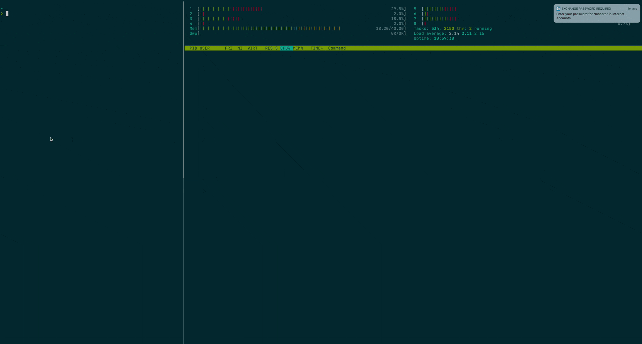 On the right pane, I'm running brew. On the left, an htop window filtered to all processes containing brew.