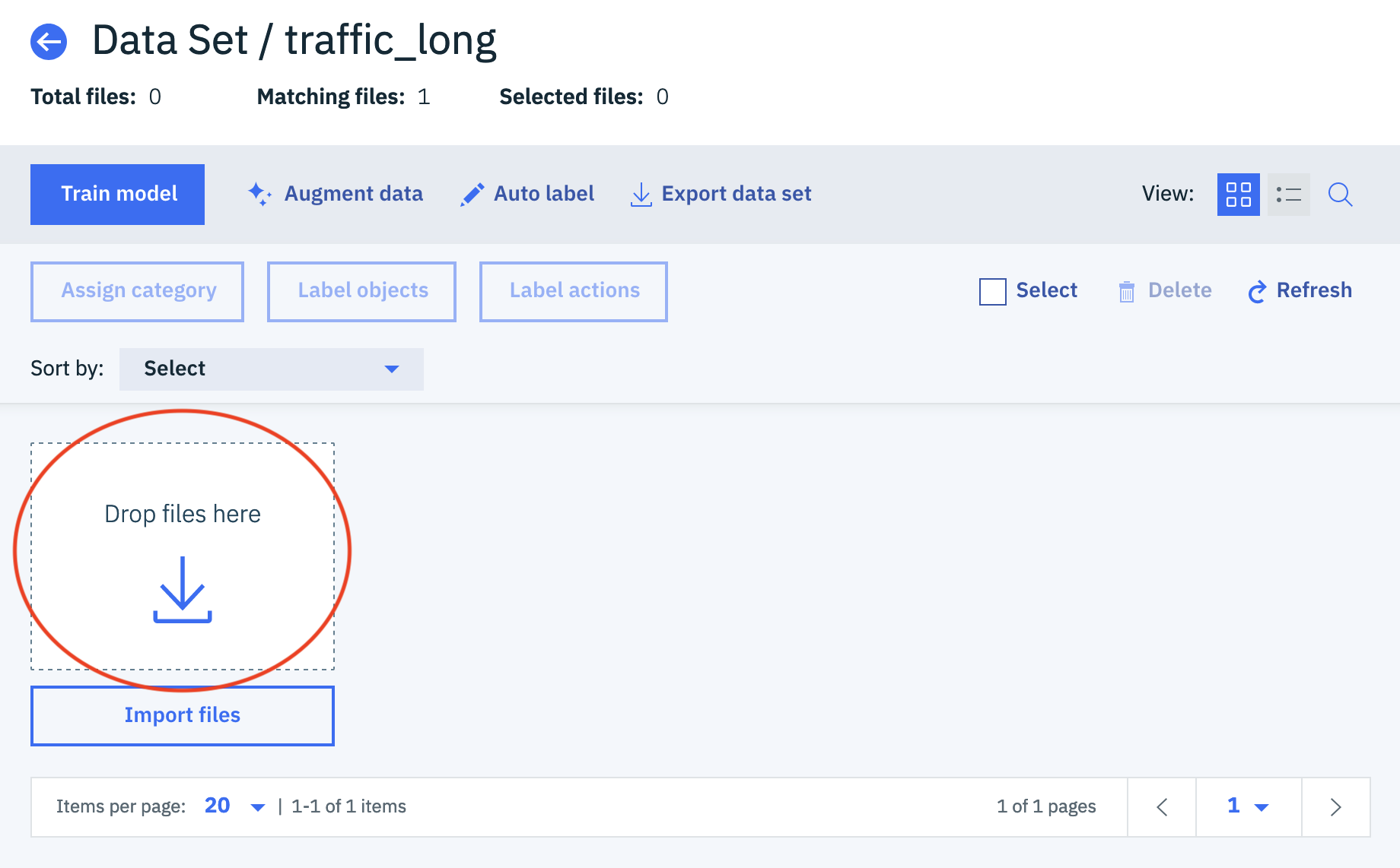 To build a model, we'll first need to upload a set of images. Click "Datasets" in the upper menu. Then, click "Create New Data Set", and enter a name. We'll use "traffic_long" here